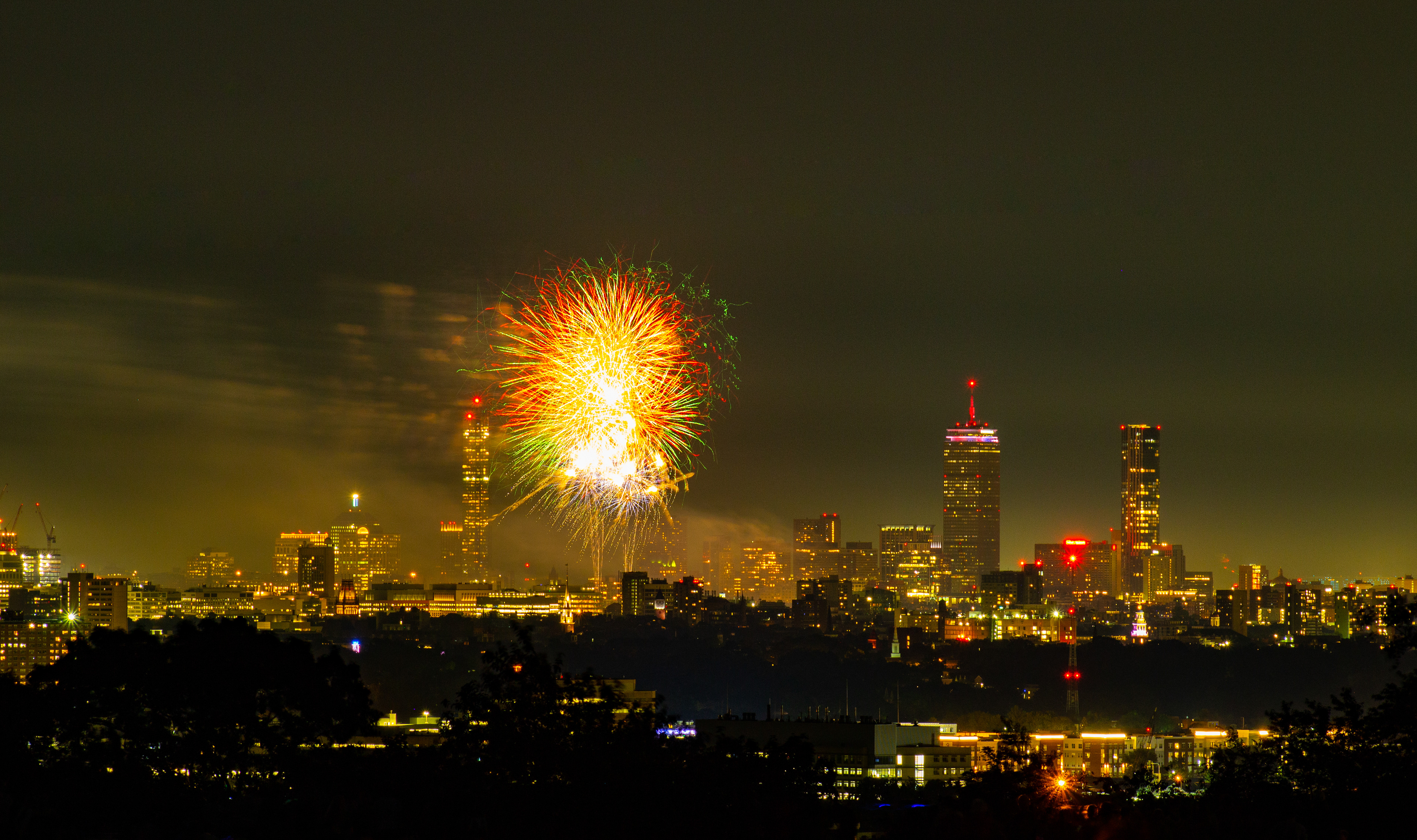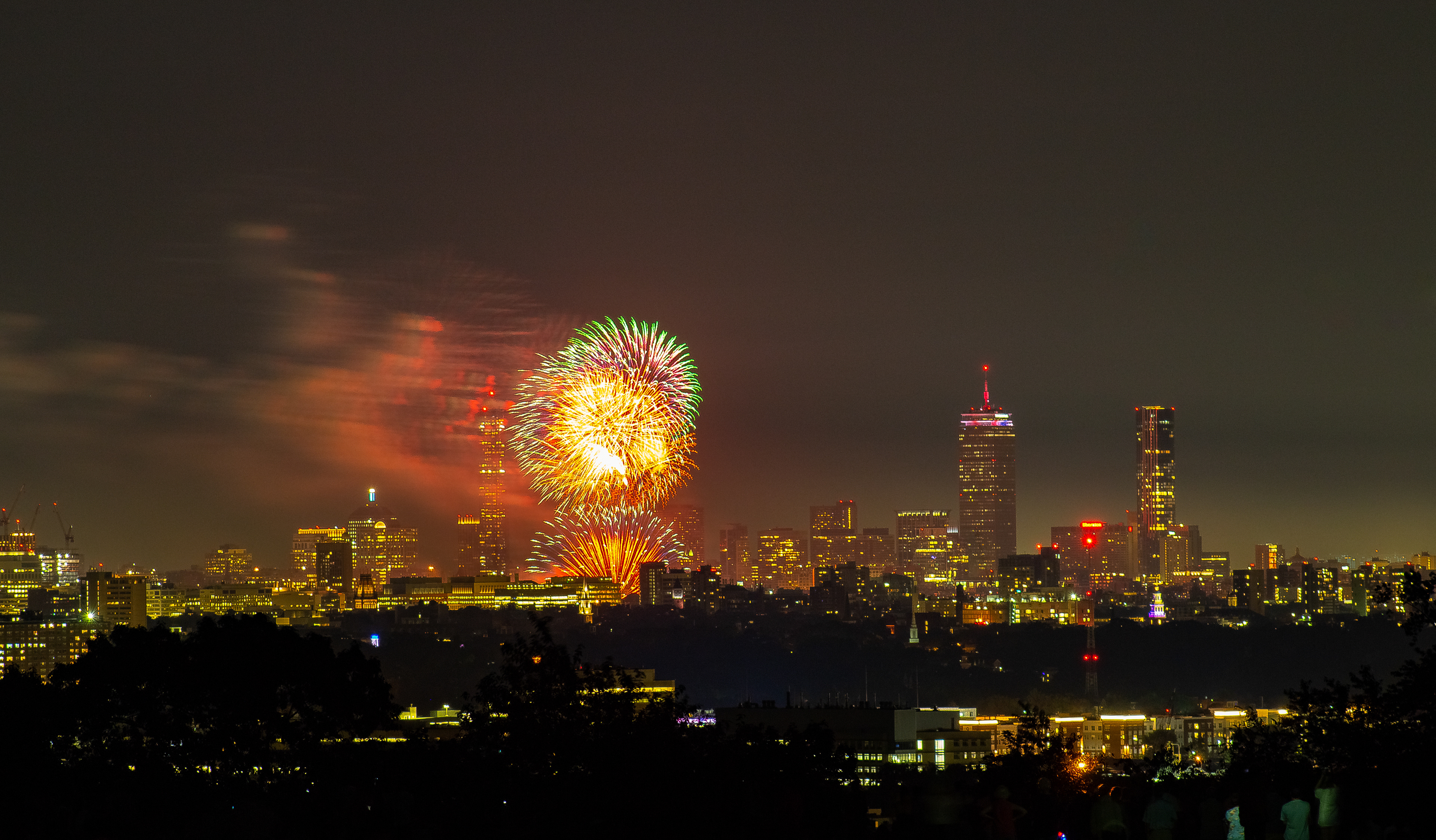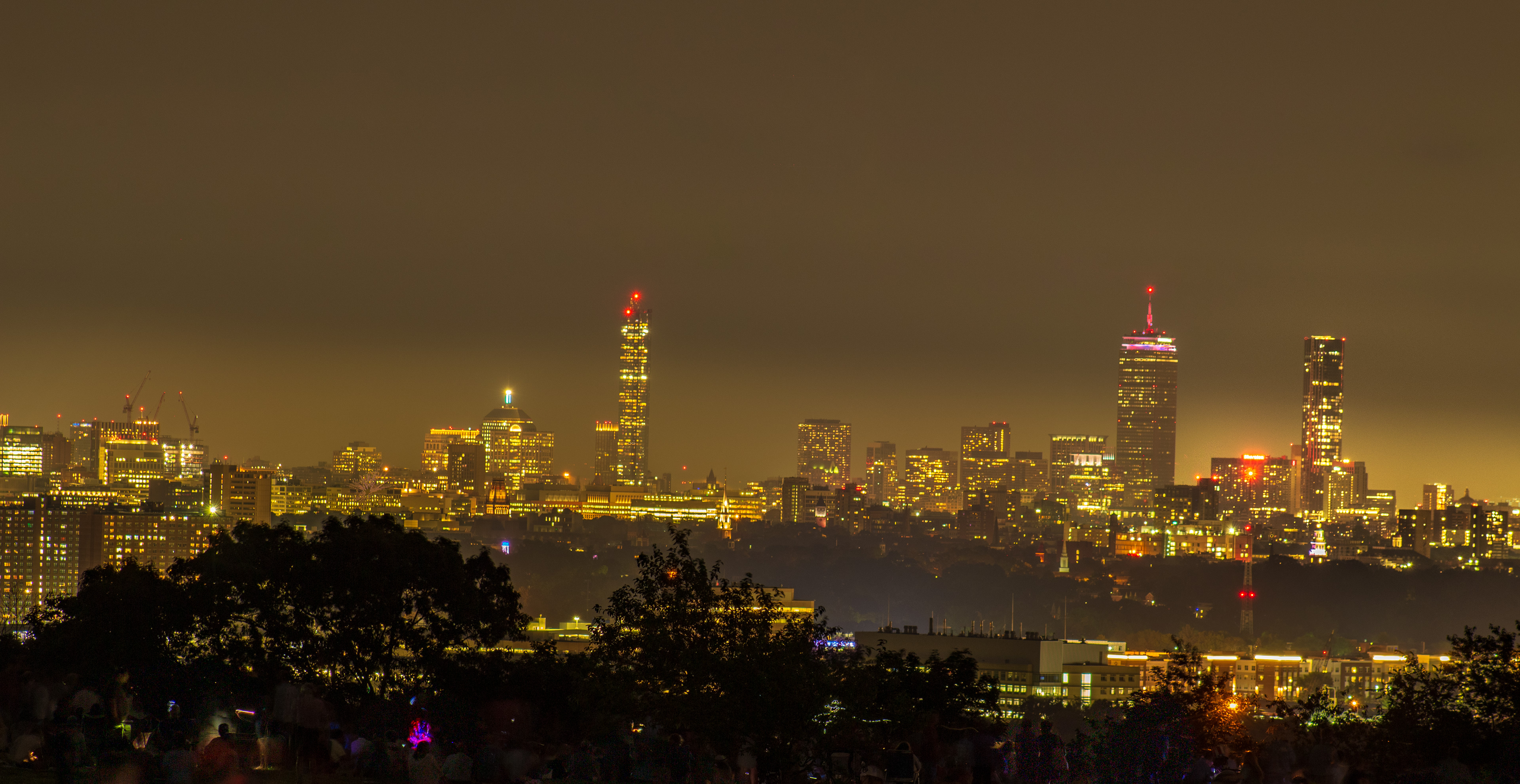 The Boston skyline from Robbins Farm Park in Arlington, Massachusetts.